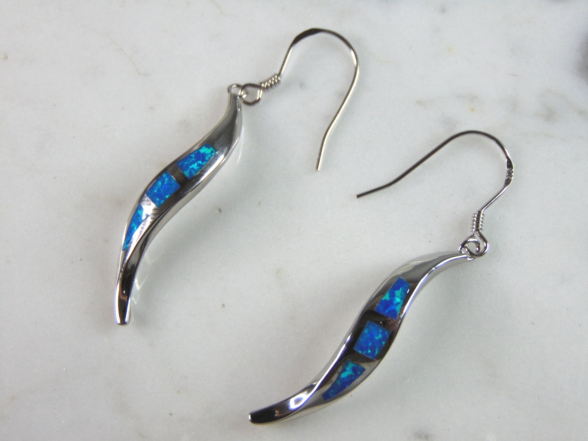 WOMENS ESTATE STERLING SILVER MODERNIST OPAL COLORED EARRINGS & PENDANT SET THAT WEIGHES 6.3g TOGETHER AND EARRINGS MEASURE 1 3/4" LONG BY 1/4" WIDE AND PENDANT MEASURES 1 1/2" BY 1/4". NOT SURE IF STONES ARE REAL OR MAN MADE. ANY OTHER QUESTIONS, PLEASE DO NOT HESITATE TO ASK. BE SURE TO CHECK OUT SOME OF MY OTHER GREAT ITEMS UP FOR SALE. THANK YOU