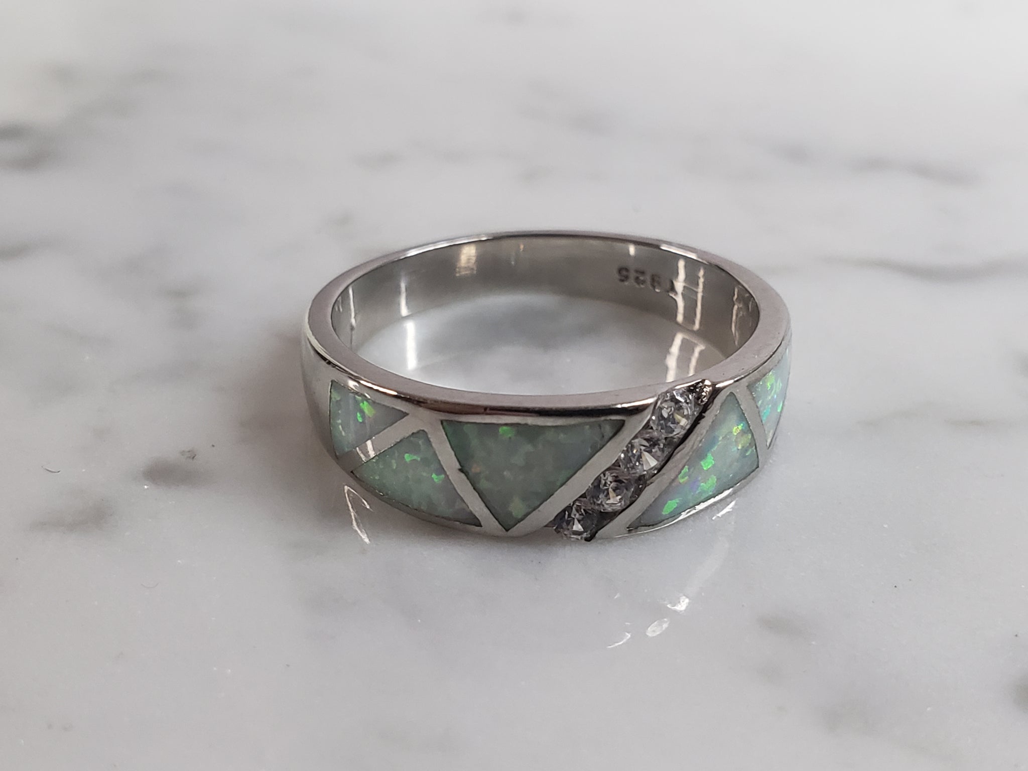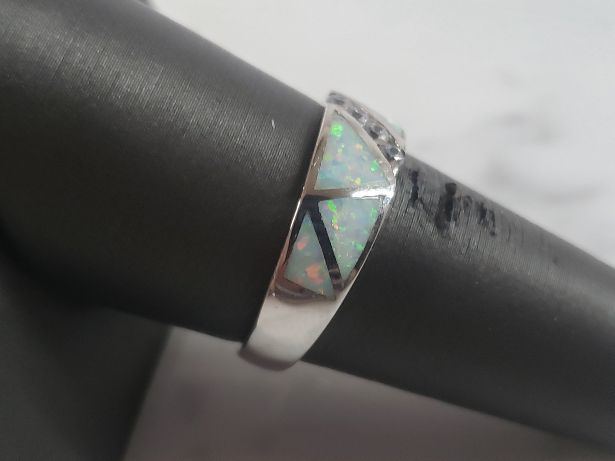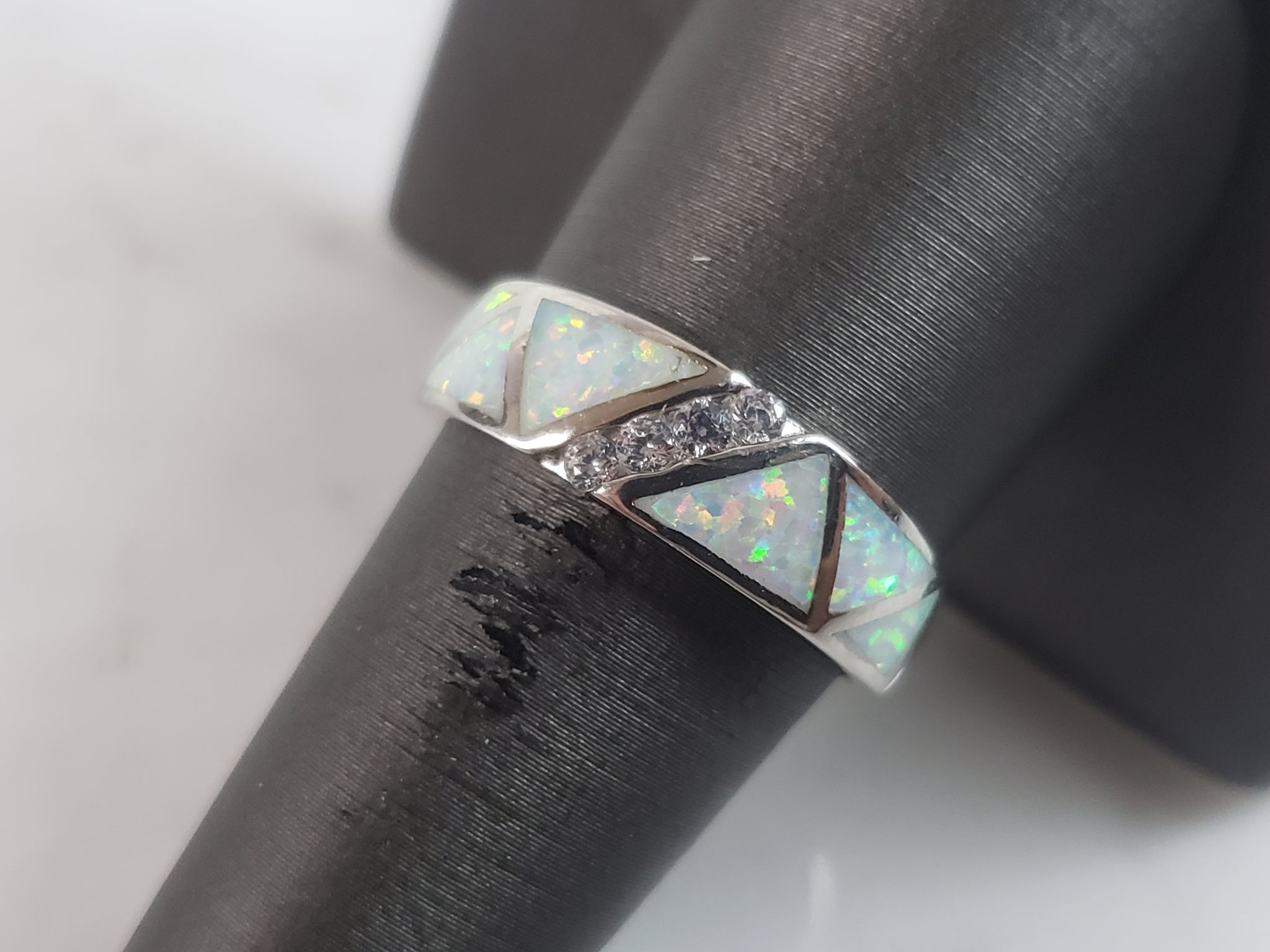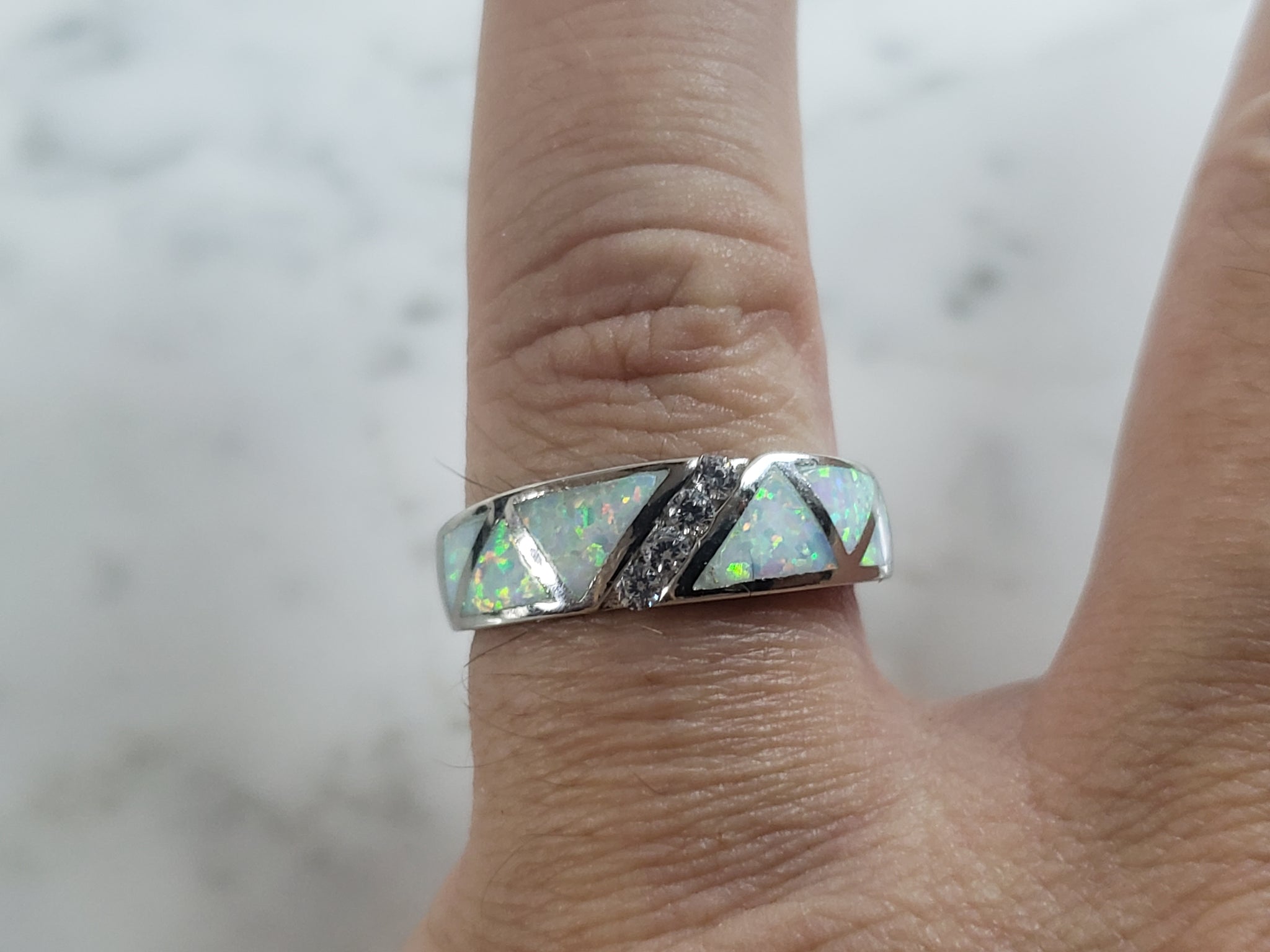 A WOMENS VINTAGE ESTATE STERLING SILVER MODERNIST OPAL RING. THE RING IS A SIZE 6.0 AND WEIGHS 4.2g. THE WIDTH OF THE RING IS 1/4". THE RING MAKES A BEAUTIFUL GIFT FOR THAT SOMEONE SPECIAL. ANY OTHER QUESTIONS, PLEASE ASK. BE SURE TO CHECK OUT SOME OF MY OTHER GREAT ITEMS UP FOR SALE. THANK YOU.
