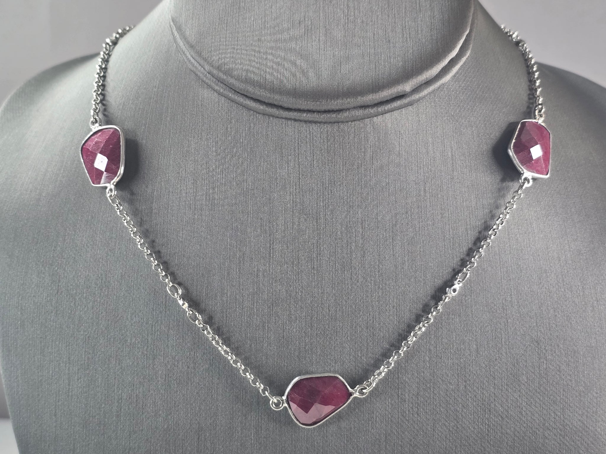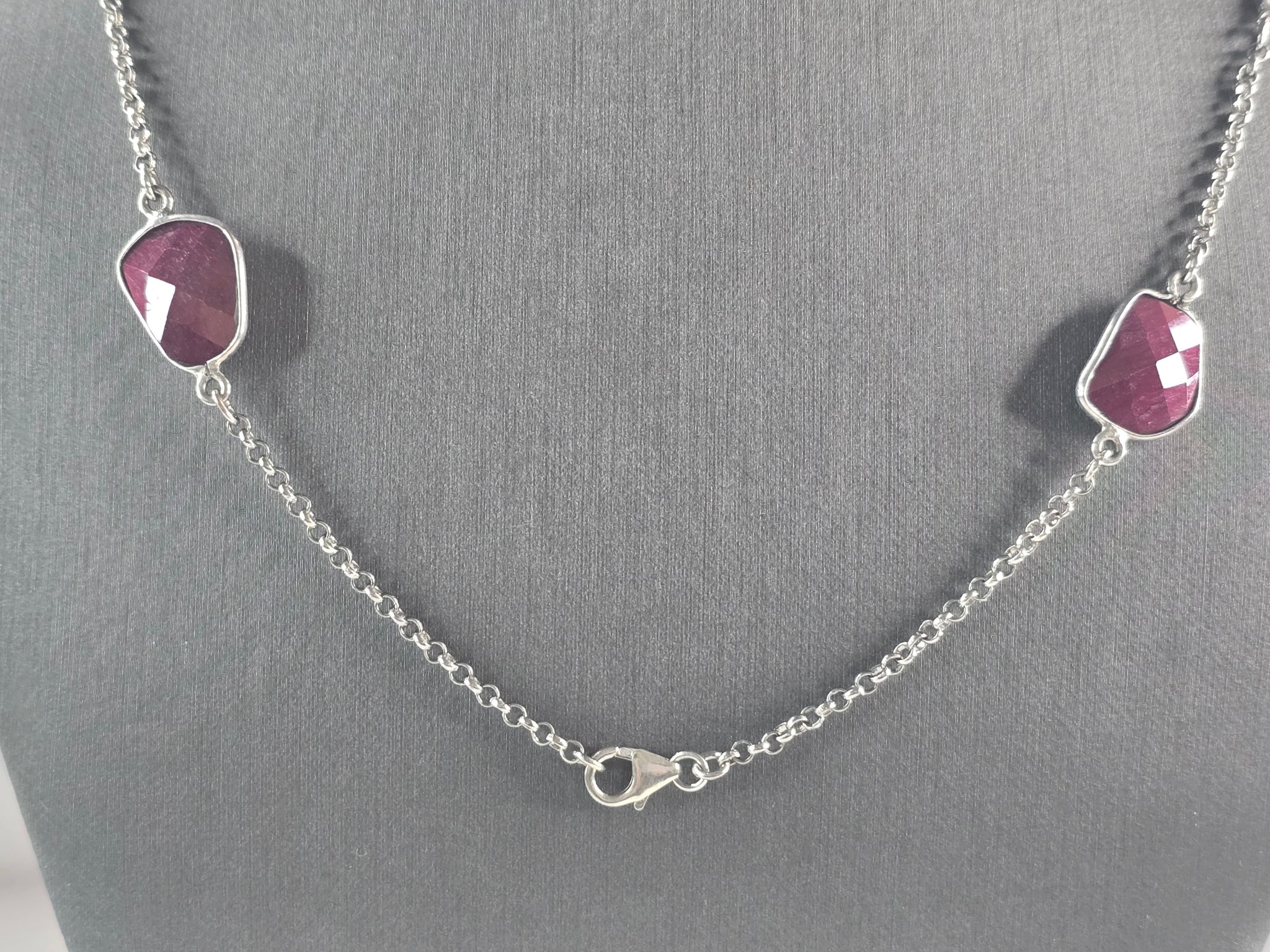 A WOMENS VINTAGE ESTATE STERLING SILVER NATURAL RUBY PENDANT NECKLACE. THE TOTAL WEIGHT IS 16.0g. NECKLACE IS 19 3/4" LONG BY 1/2" WIDE. MAKES A GREAT GIFT FOR THAT SPECIAL SOMEONE. ANY QUESTIONS PLEASE DONT HESITATE TO ASK. BE SURE TO CHECK OUT SOME OF MY OTHER GREAT ITEMS UP FOR SALE. THANK YOU.