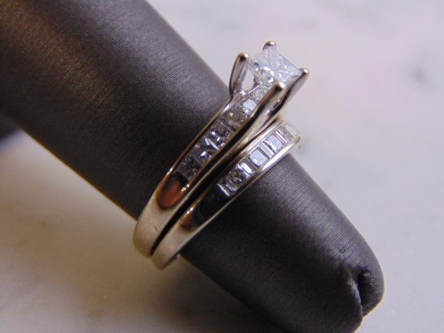 FOR SALE IS THIS WOMEN'S VINTAGE 14K WHITE GOLD DIAMOND ENGAGEMENT RING. THE SIZE OF THE RING SIZES ARE 3.25, AND 3.5 AND WEIGHS 4.7g. THERE ARE ABOUT .77cts BETWEEN THE TWO RINGS. THIS WOULD MAKE A LOVELY GIFT FOR THAT SOMEONE SPECIAL. ANY OTHER QUESTIONS, PLEASE DON'T HESITATE TO ASK. BE SURE TO CHECK OUT SOME OF MY OTHER GREAT ITEMS UP FOR SALE. THANK YOU.