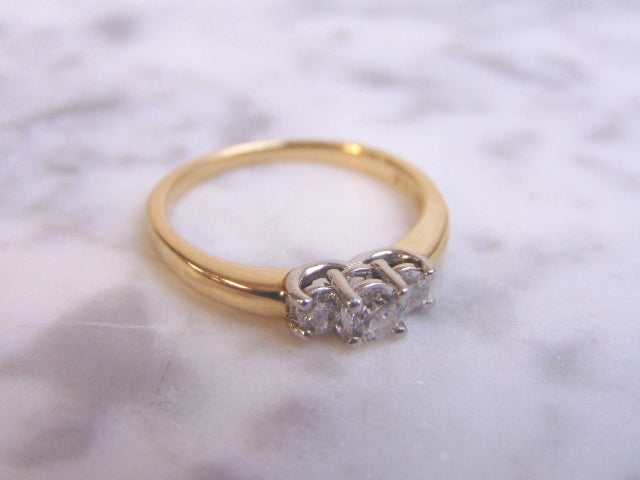 FOR SALE IS THIS VINTAGE ESTATE 14K GOLD DIAMOND RING WITH PLATINUM. THE RING IS A SIZE 7.5 AND WEIGHS 3.4g. THERE ARE ABOUT .40cts OF DIAMONDS. NOT SURE WHAT GRADE THE DIAMONDS ARE BUT THEY DO HAVE A NICE SPARKLE TO THEM. RING MAKES A BEAUTIFUL GIFT FOR THAT SOMEONE SPECIAL. ANY OTHER QUESTIONS, PLEASE ASK. BE SURE TO CHECK OUT SOME OF MY OTHER GREAT ITEMS UP FOR SALE. THANK YOU
